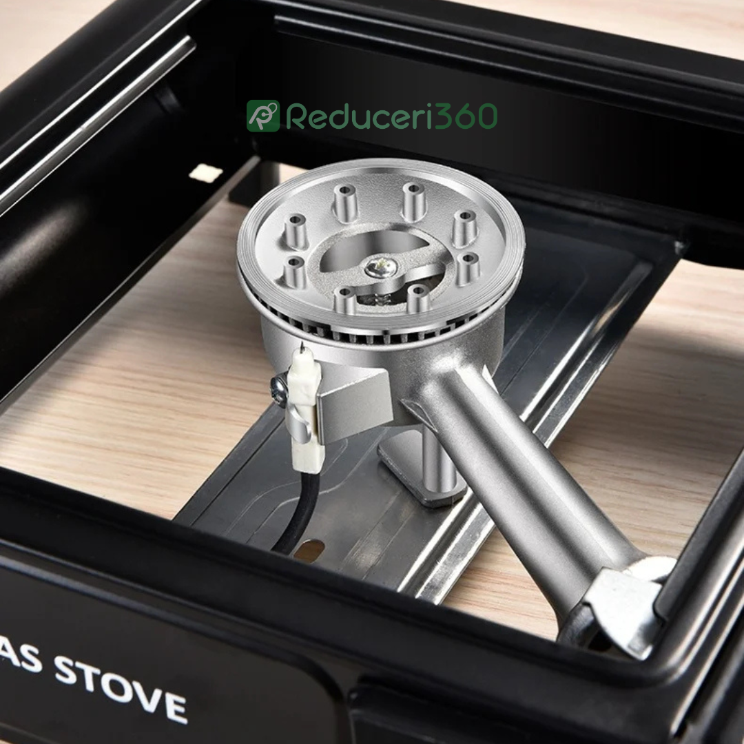 - Are un guler in jurul arzatorului care protejeaza impotriva vantului si reglajului flacarii.
