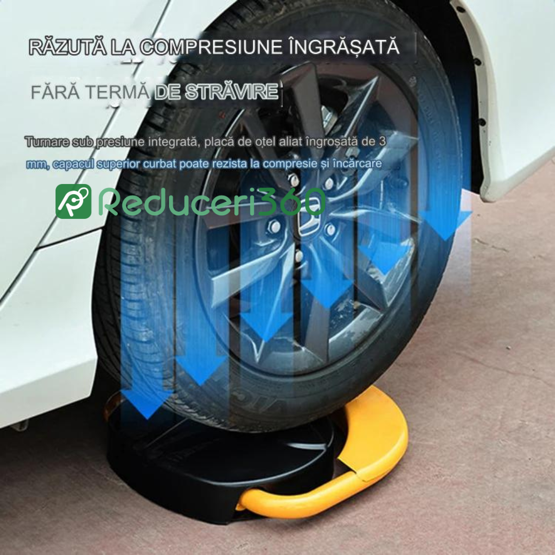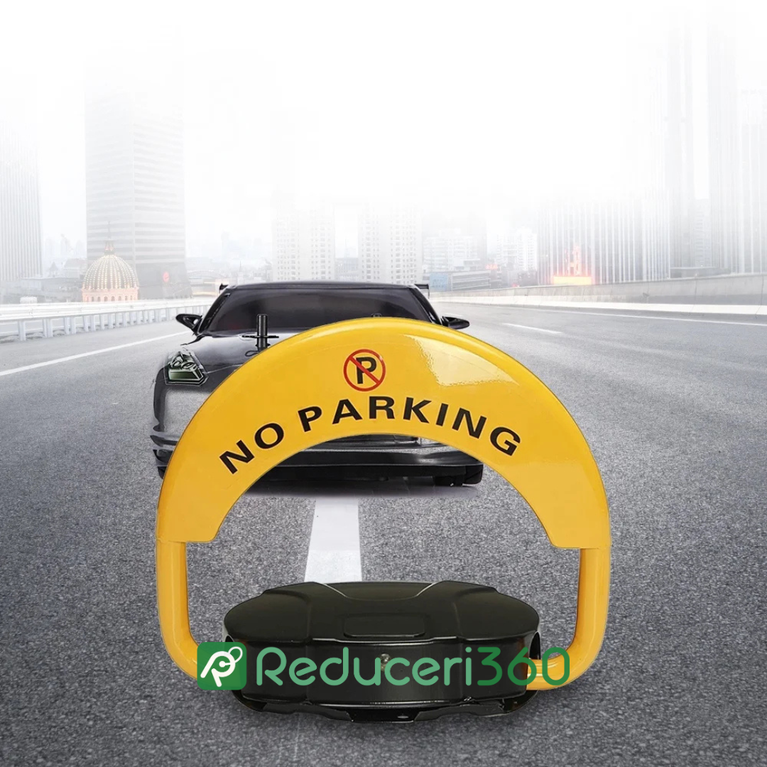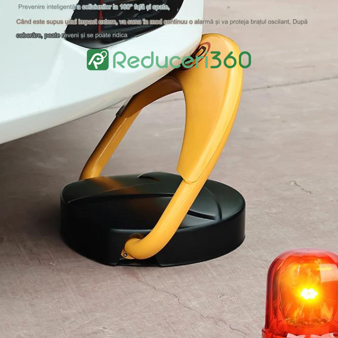 Blocator loc parcare automat, cu 2 telecomenzi si alarma, suporta 2 tone, Galben/Negru, rezistent intemperii