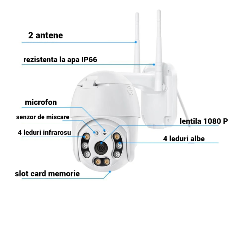 8. Detectarea mișcării, poate fi setată la detectarea mișcării, poate trimite o notificare prin aplicatia de mobil.