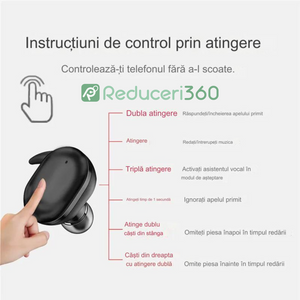 Pachetul include: 2 x Cască Bluetooth TWS; 1 x Carcasă de încărcare; 1 x Cablu de încărcare USB; 1 x Manual de utilizare