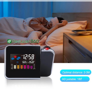 - Ceasul proiecteaza ora pe perete sau pe tavan, cu posibilitatea reglarii unghiului de proiectie.