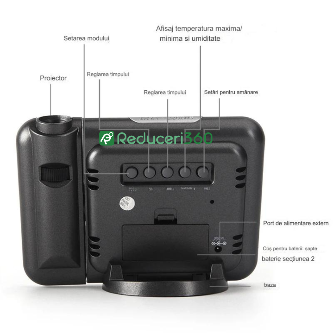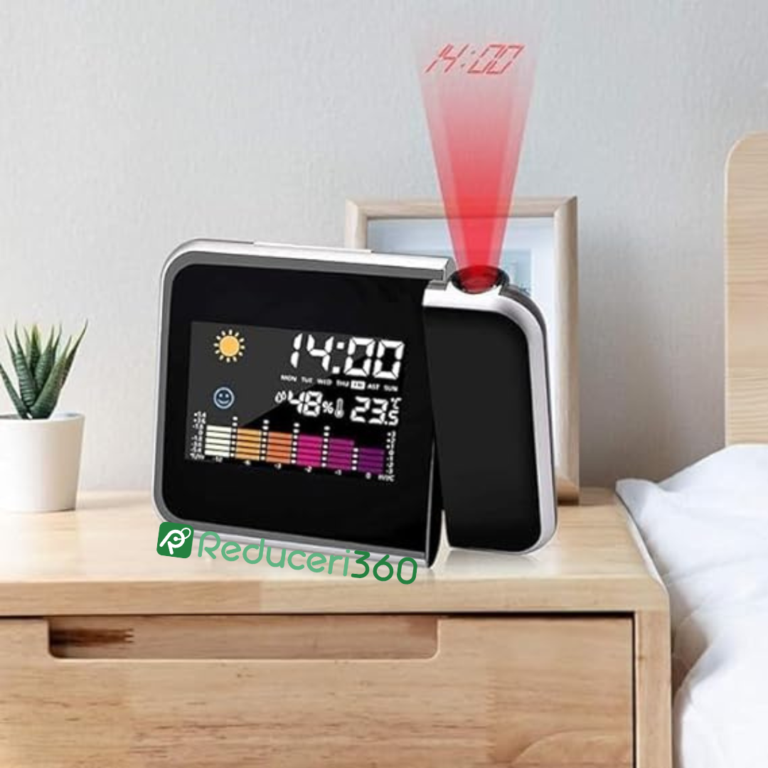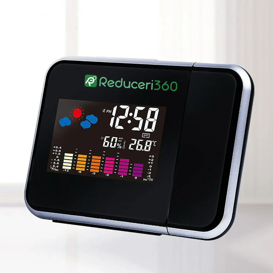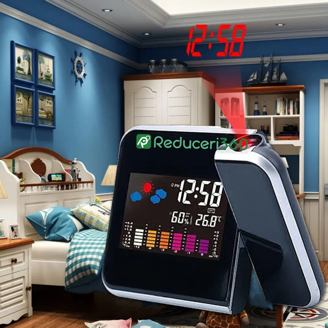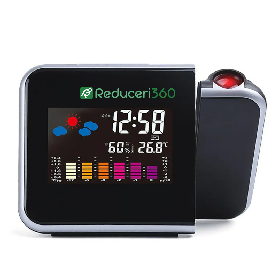 Ceas digital cu termometru, indicator umiditate si proiectie ora
