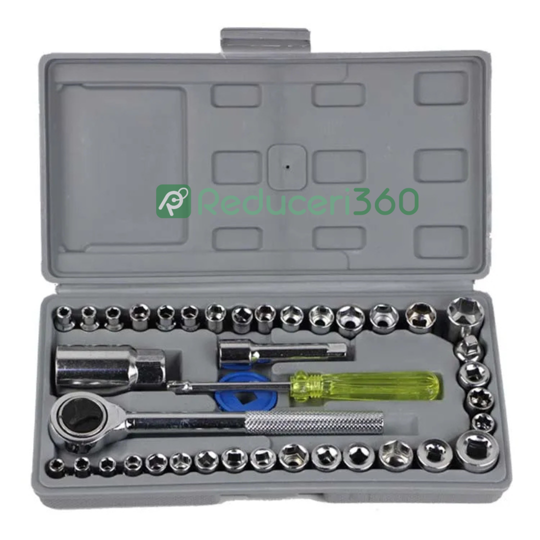 Chei tubulare, surubelnite cu clichet, trusa 40 de piese