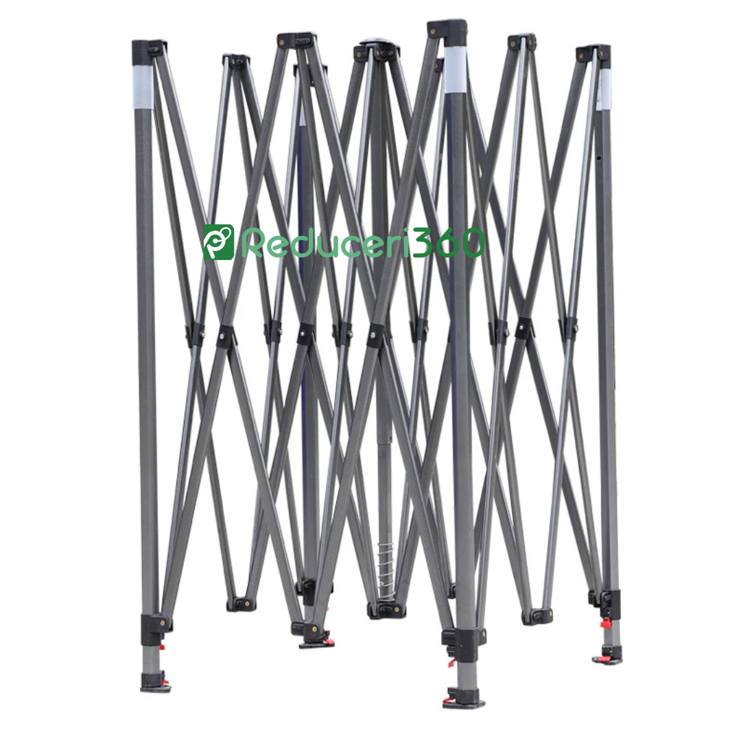 Descriere: Îți dorești să transformi fiecare întâlnire în aer liber într-un eveniment de neuitat, plin de stil și confort? Cortul Pavilion 3x3m este răspunsul! Cu un design pliabil, tip acordeon, și un cadru metalic durabil, acest cort pavilion devine alegerea perfectă pentru a-ți îmbunătăți experiența în aer liber.