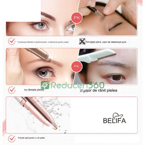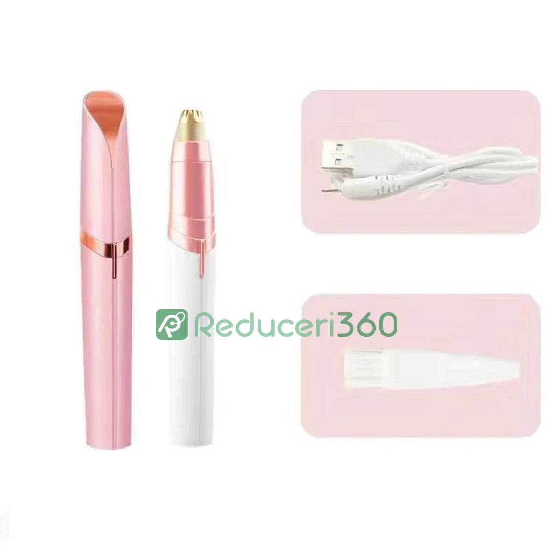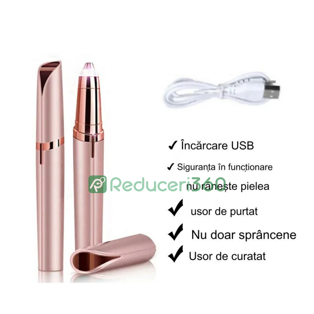 - Designul si dimensiunile reduse fac din aparatul de tuns sprancene un gadget cosmetic, ce poate fi transportat foarte usor, in poseta sau chiar in buzunare.