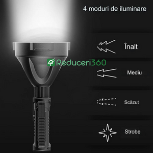 - Lanterna este foarte practica si perfecta in orice fel de situatii si in orice moment datorita puterii mare si a celor 4 moduri de iluminat: (Mare, Mediu, Slab si Stroboscop).