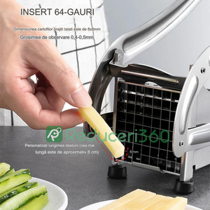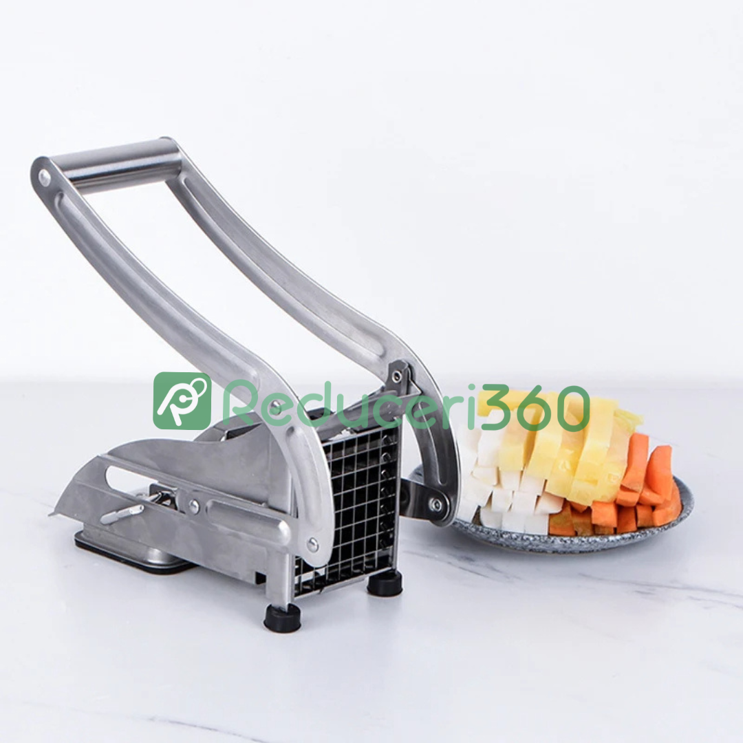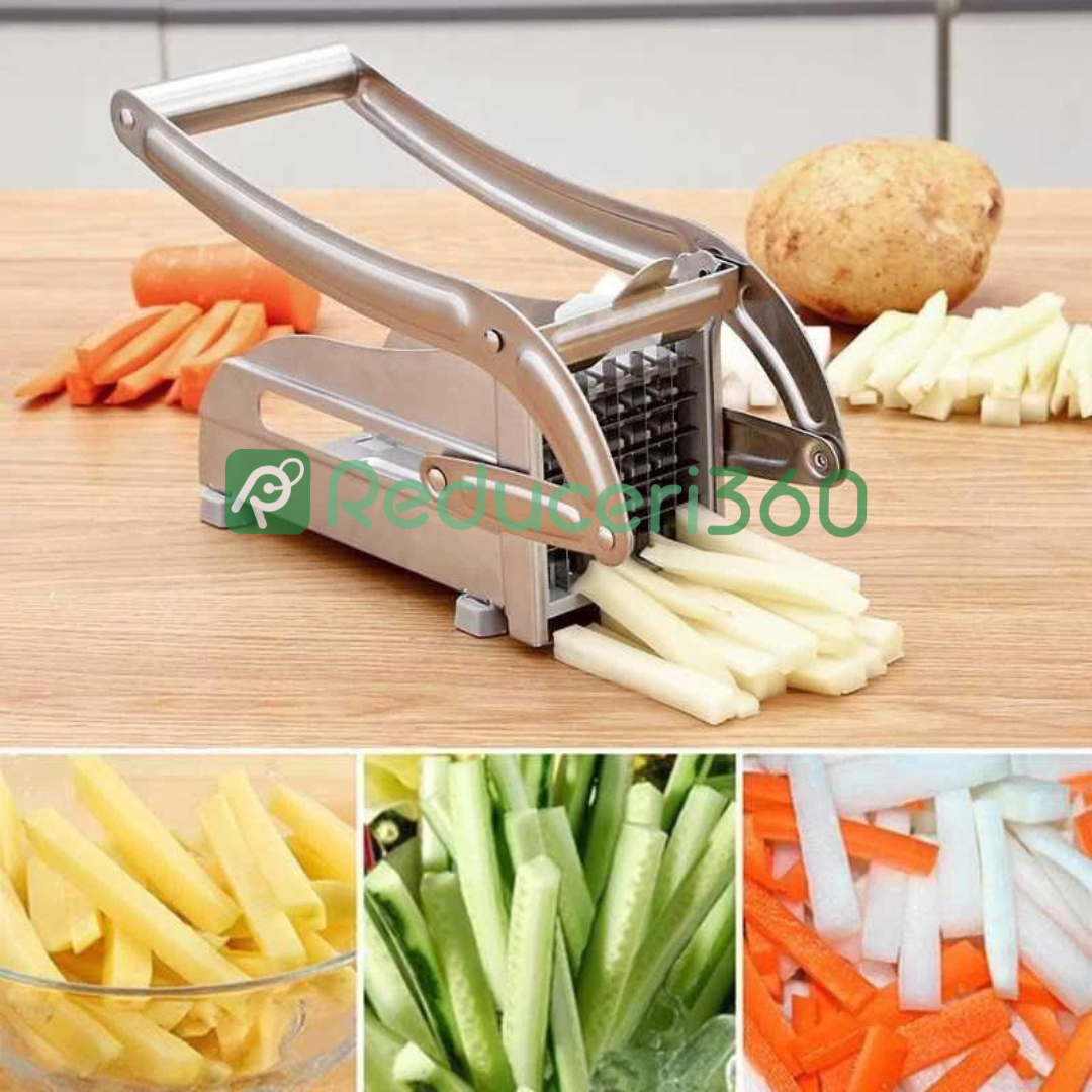 Cartofii prajiti sau gatiti la friteuza cu aer cald sunt printre cele mai iubite preparate. Fa o arta din felul in care ii gatesti! Daca ti s-a intamplat de multe ori, atunci cand ai servit familiei acest preparat, sa observi cartofi taiati inegal si din aceasta cauza neprajiti corespunzator, atunci iata solutia! Achizitioneaza aparatul de taiat cartofi pai si legume si tu si ce dragi veti avea parte de cei mai aspectuosi si gustosi cartofi prajiti!