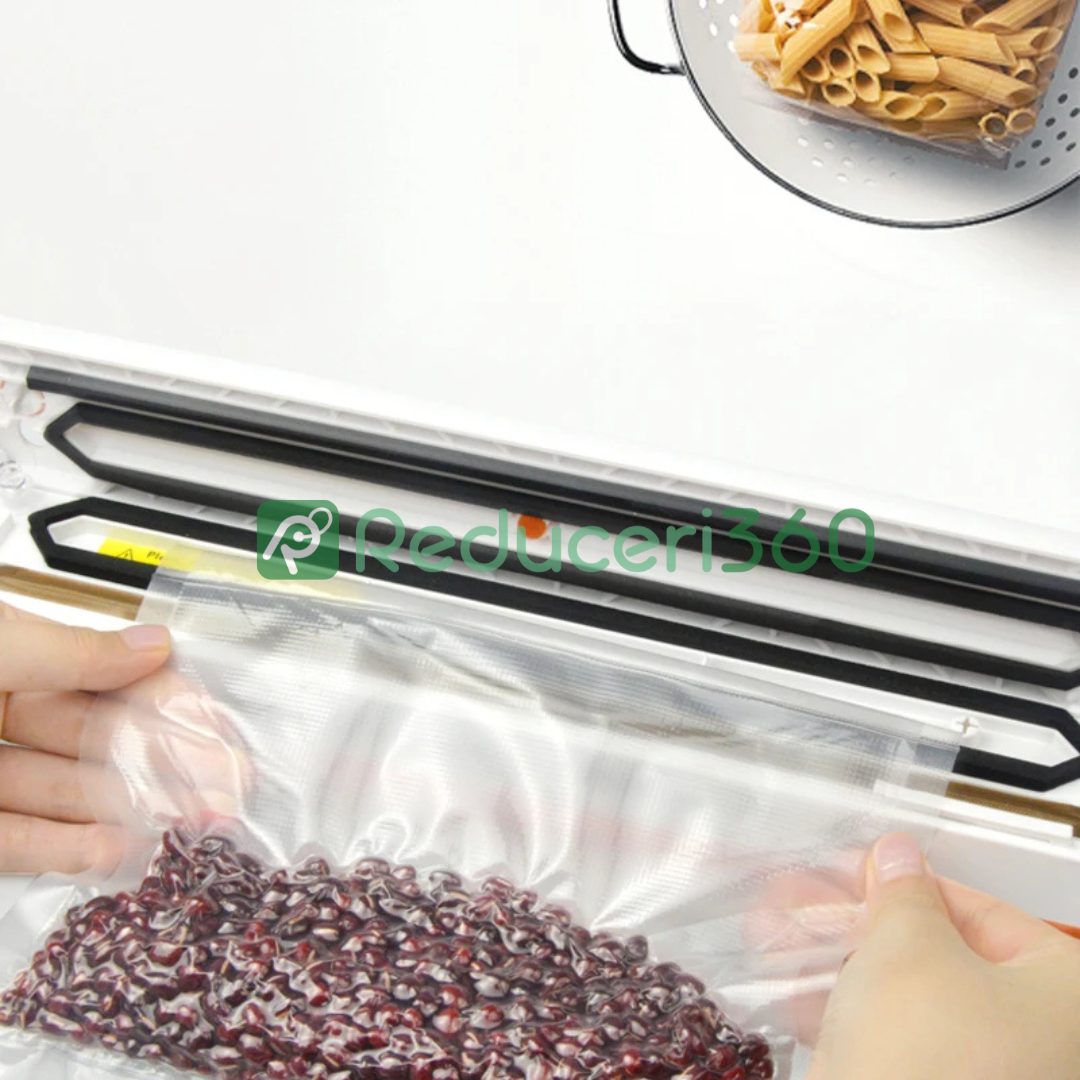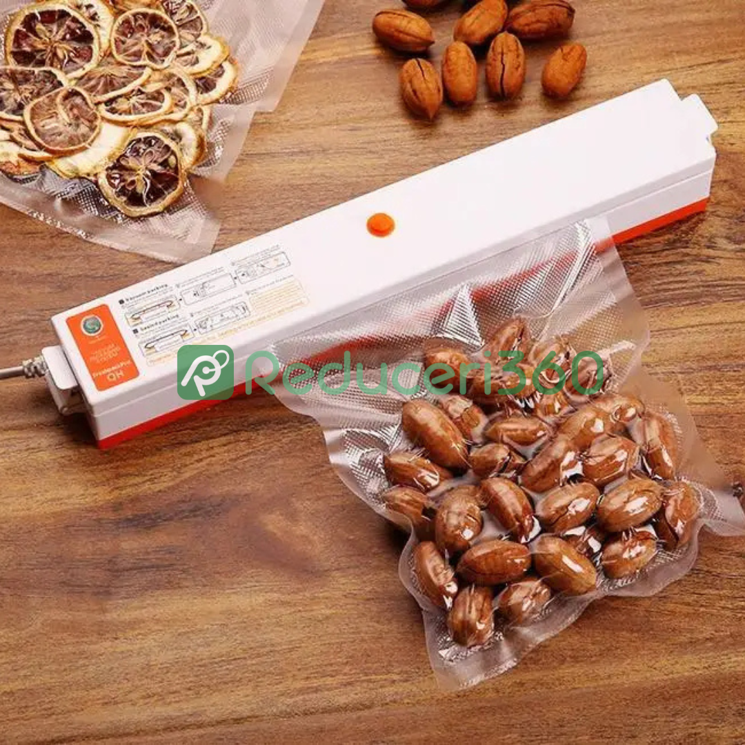 Nu lasa prospetimea alimentelor sa fie o problema! Cu acest aparat de vidat pungi, vei putea mentine gustul si aroma alimentelor preferate pentru mai mult timp. Cumpara acum acest aparat practic si revoluționar pentru bucataria ta!