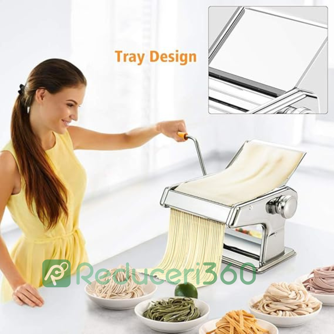 Masina de Facut Paste, Taitei, si Ravioli, Otel Inoxidabil, 6 Latimi Diferite, 24x19x15cm, Argintiu