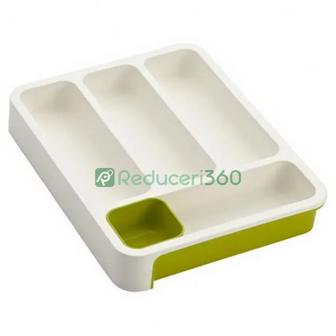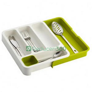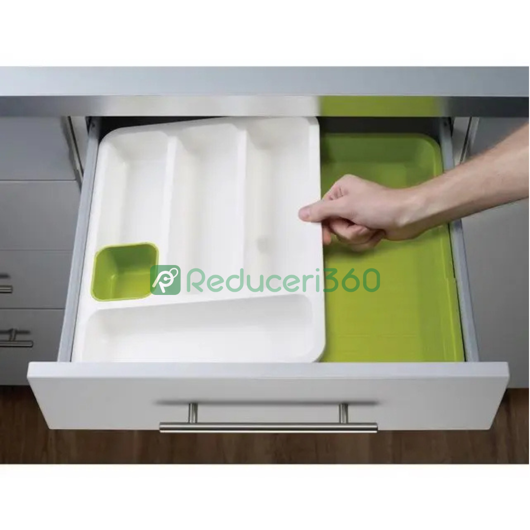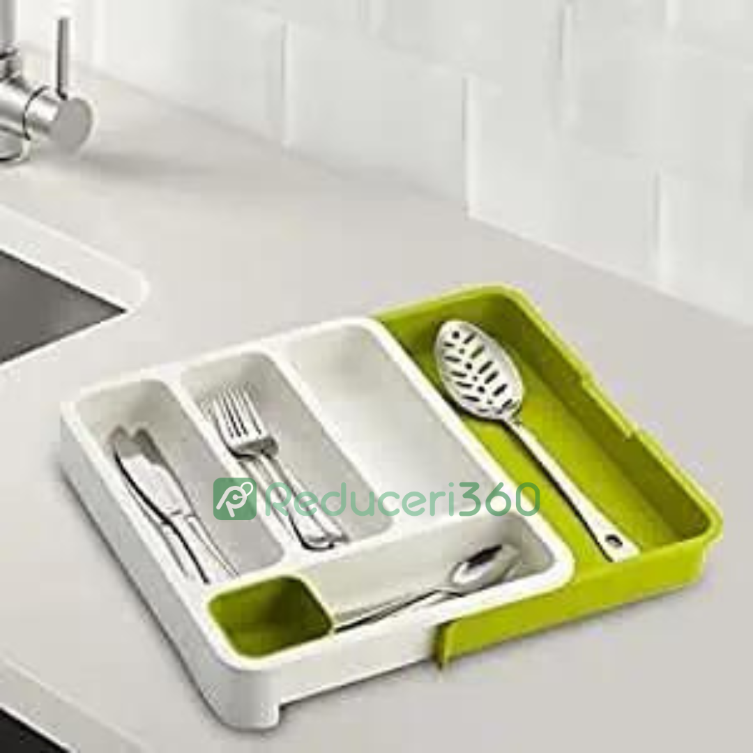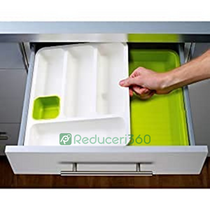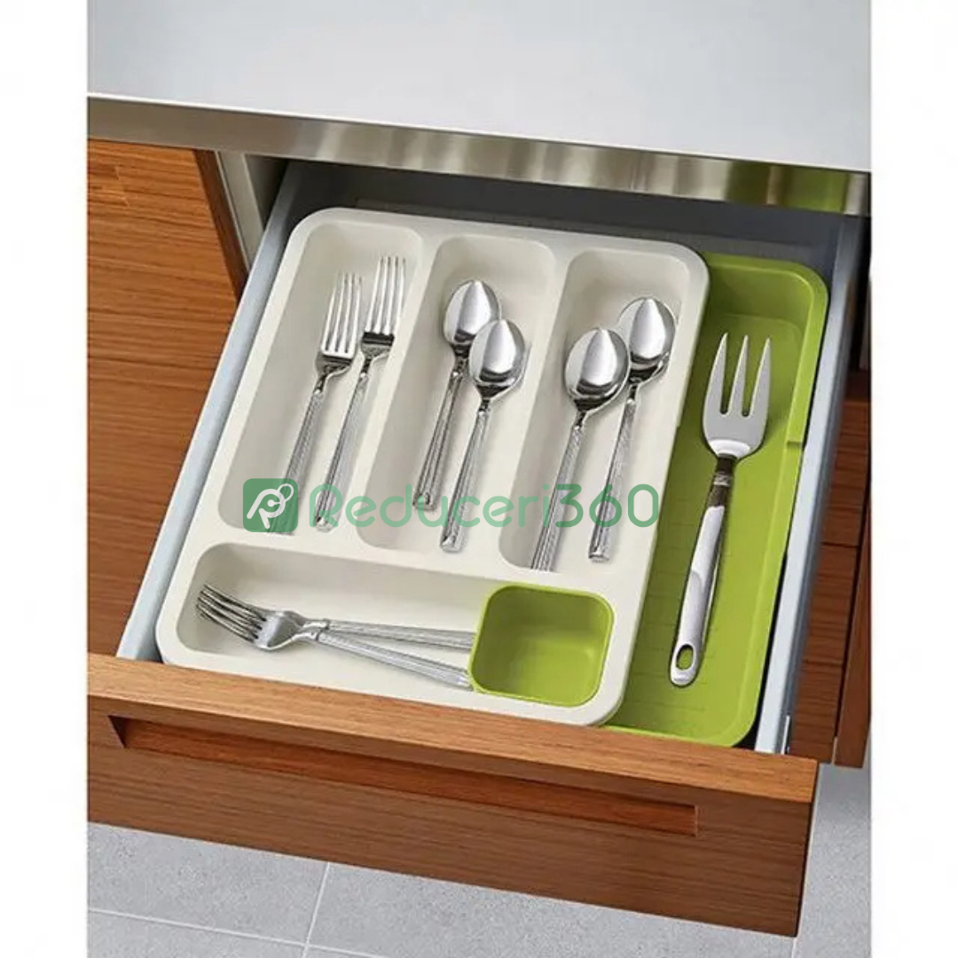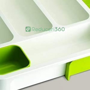 - Faptul ca este extensibil, permite asezarea acestuia cu usurinta in sertare de dimensiuni variabile si sortarea mai usoara a tacamurilor.