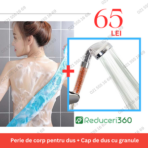 Pachet! Perie de corp pentru dus + Cap de dus cu granule