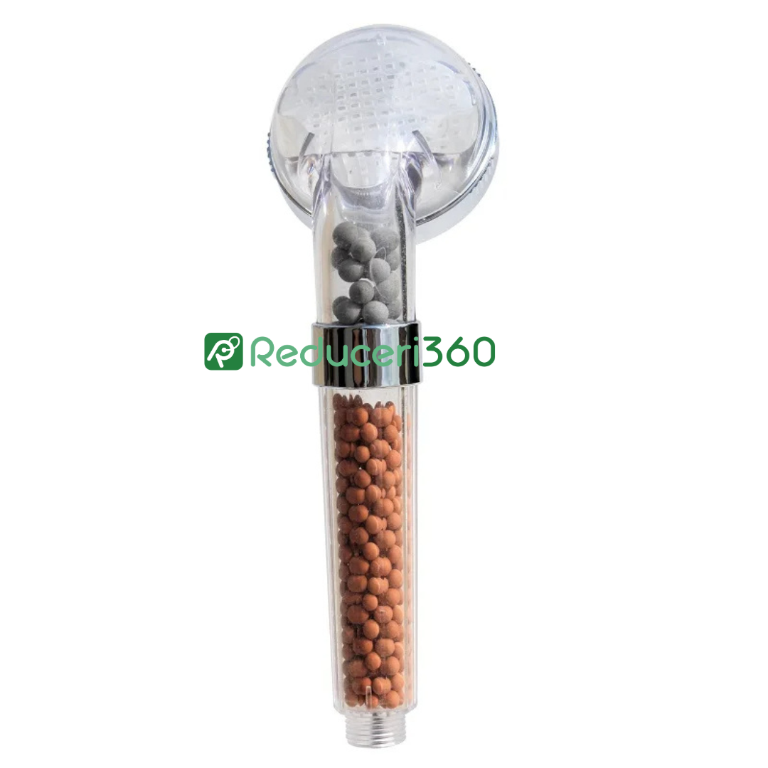 filtreaza calcarul din apa, ajuntand la mentinerea unei bai curate. Capul de dus cu granule anti-calcar este ideal in orice baie, pentru mentinerea in conditii perfecte a cabinei de dus. Datorita faptului ca depunerile de calcar reprezinta cea mai mare problema atunci cand vine vorba de accesoriile care intra in contact cu apa, noi va punem la dispozitie un sistem anti-calcar. Capul de dus cu granule anti-calcar poate fi montat la orice furtun obisnuit de dus. Para este foarte usor de montat si reprezinta o utilitate extrem de practica, deoarece calcarul lasa urme pe faianta sau gresia stropita cu apa, astfel putand evita acest lucru.
