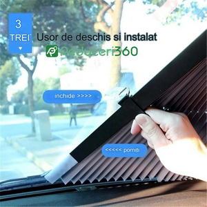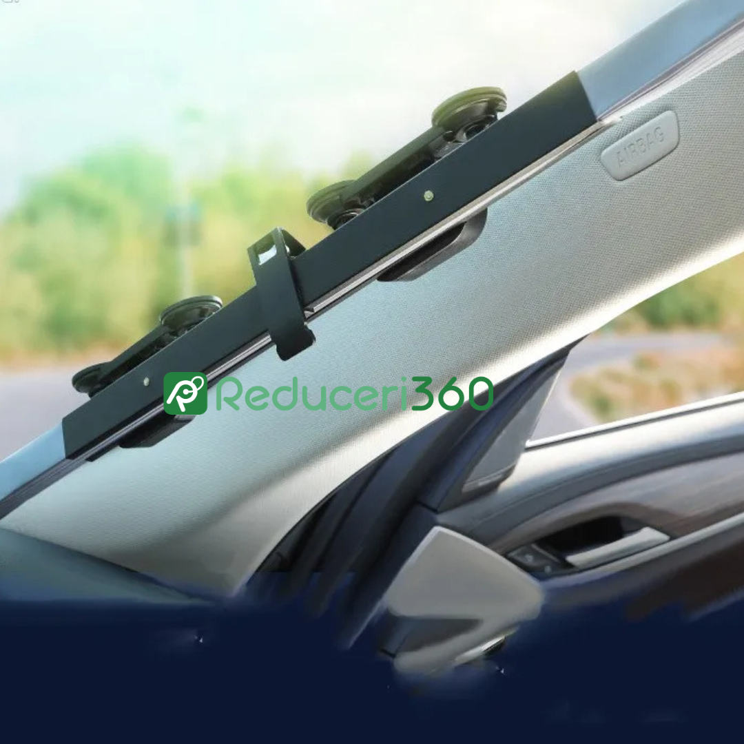 Parasolarul poate fi montat cu ușurință pe interiorul parbrizului sau pe lunetă cu ajutorul ventuzelor.