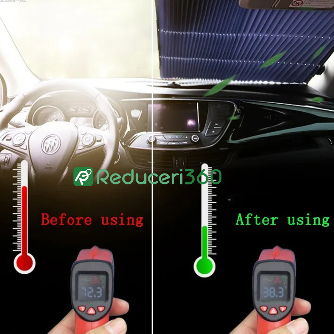 Scapă de căldura excesivă în zilele lungi de vară. Acest parasolar împiedică încălzirea excesivă a interiorului mașinii tale. Nu va mai trebui să folosești sistemul de climatizare la trepte ridicate de răcire pentru a putea porni la drum.
