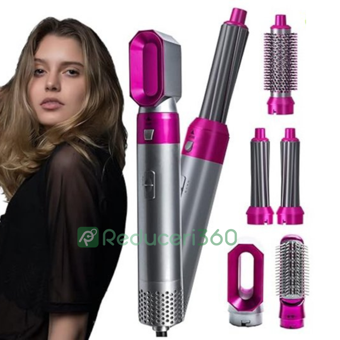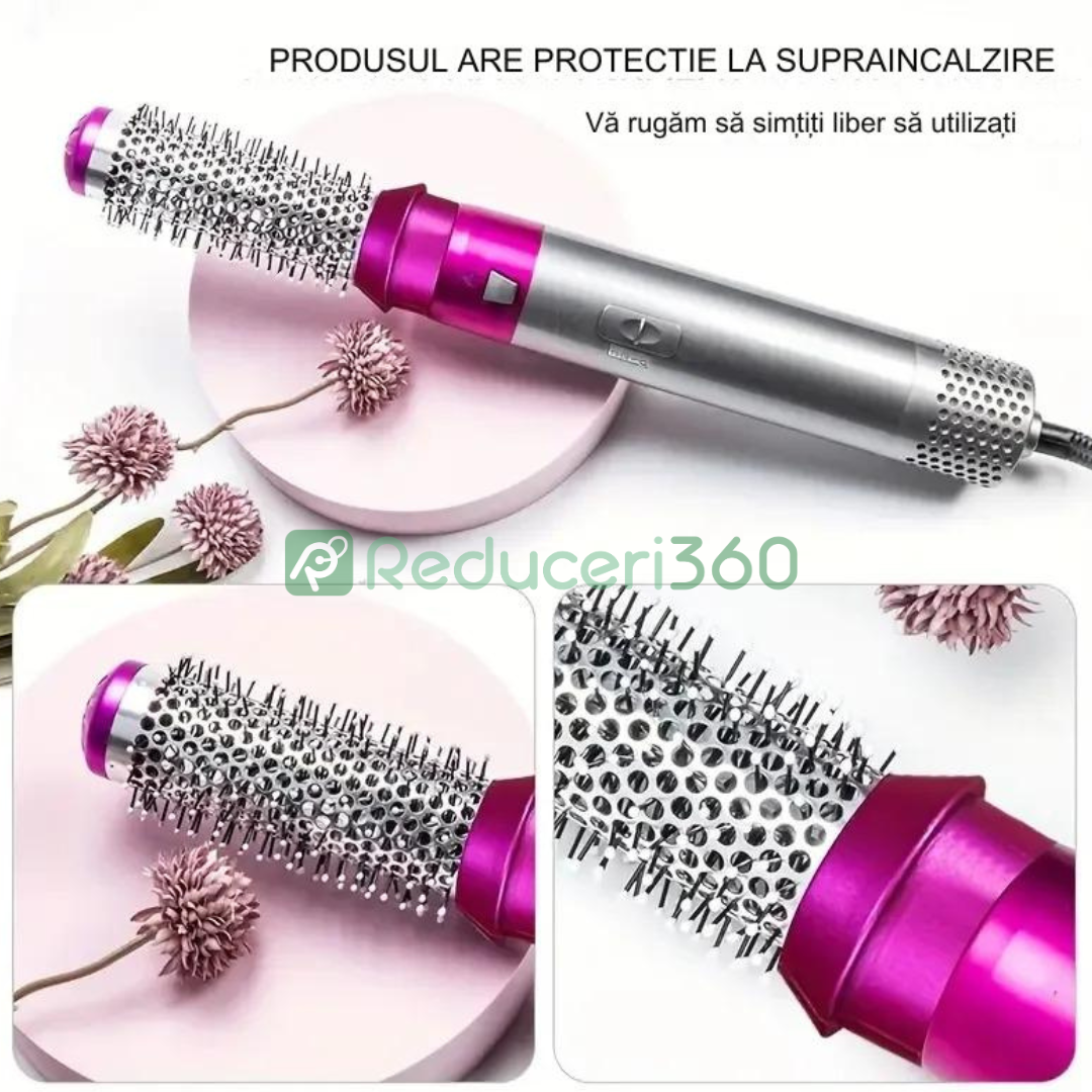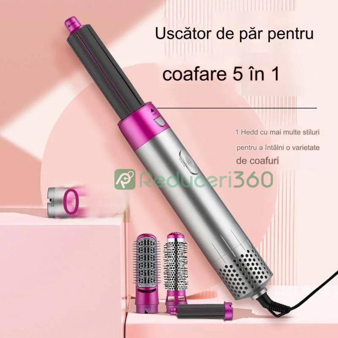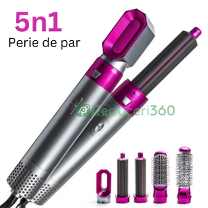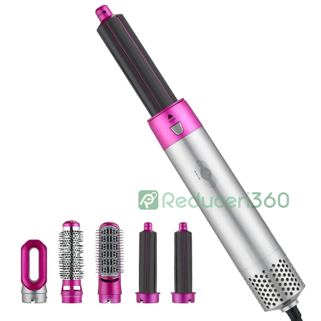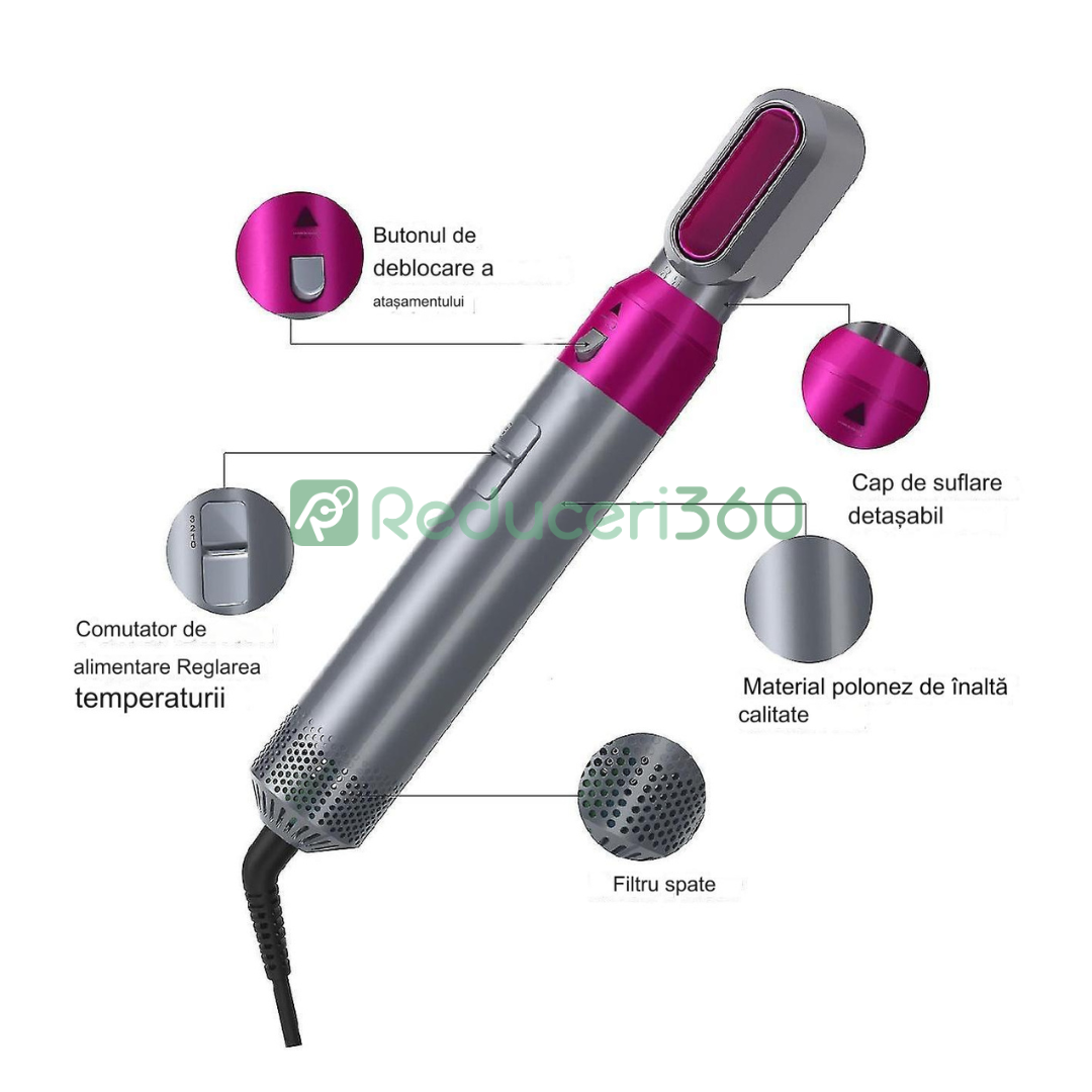 Perie de par 5n1, Aer cald, 3 Trepte temperatura, Roz/Gri