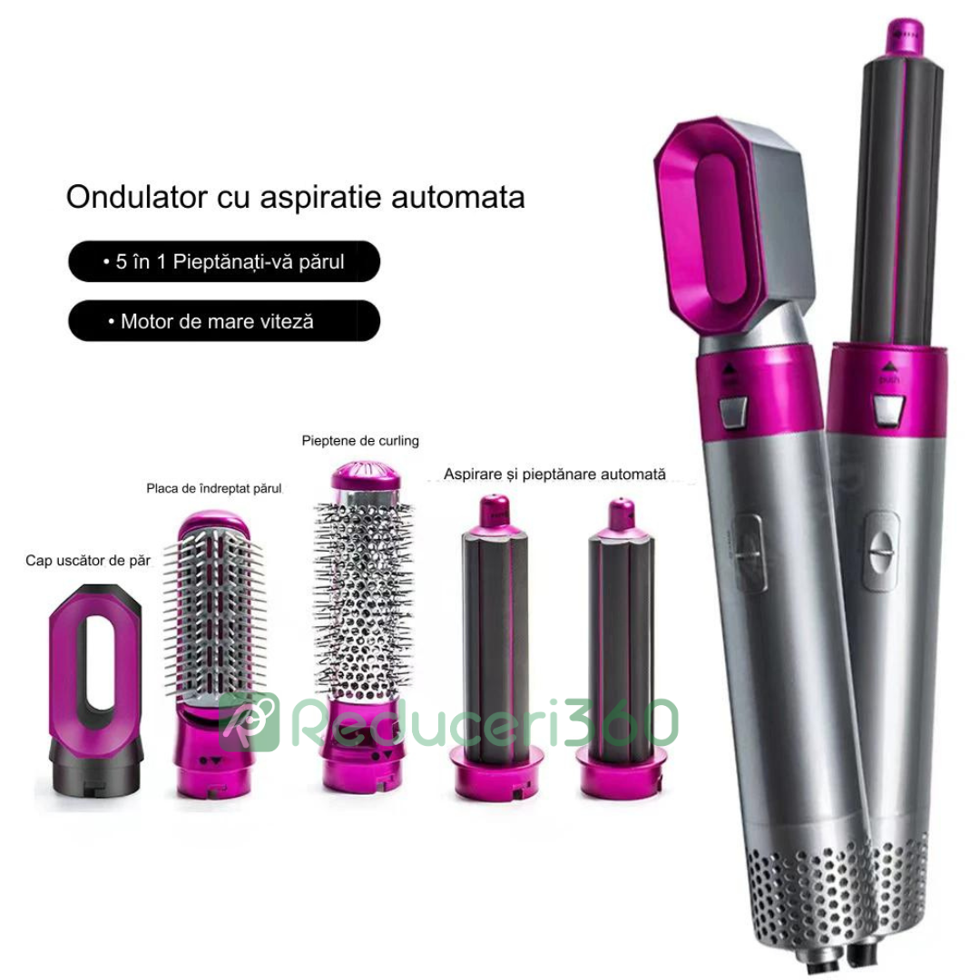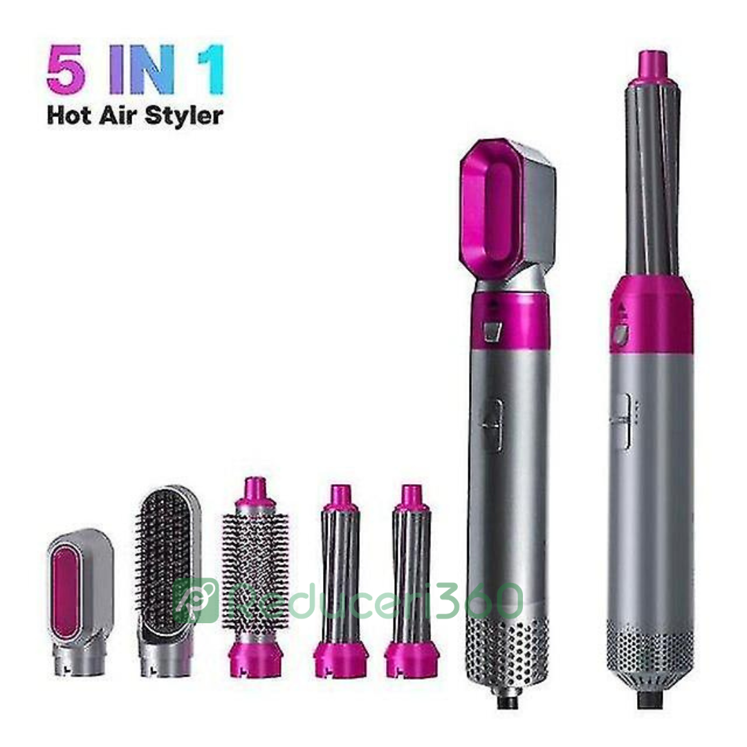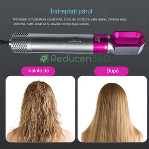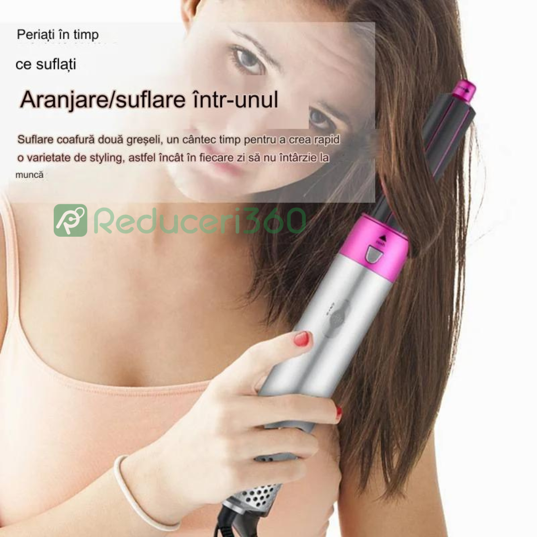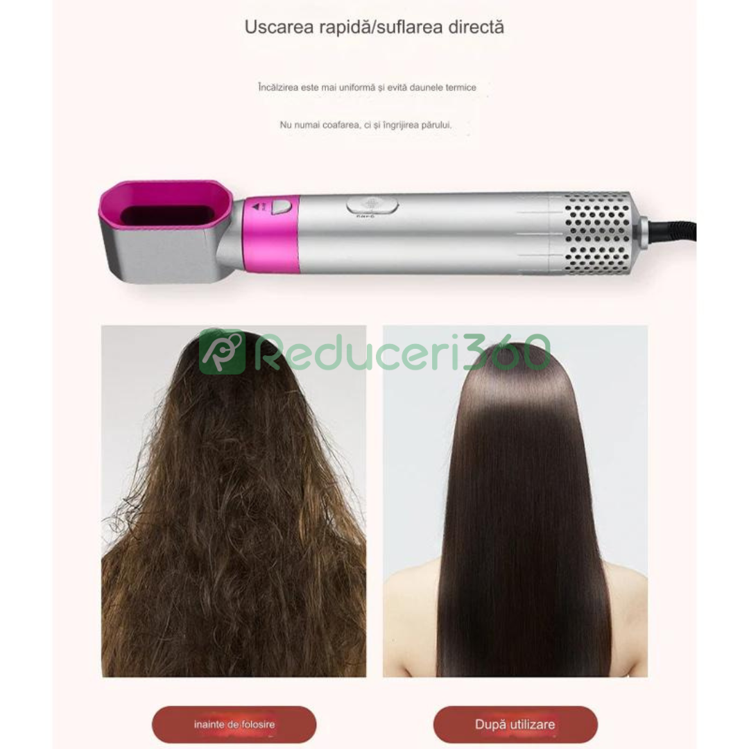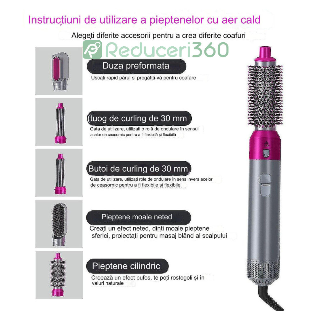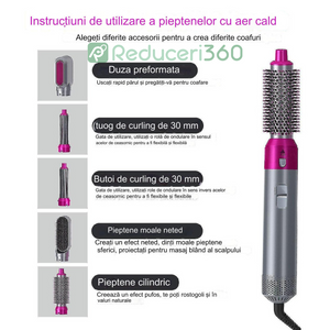 Perie de par 5n1, Aer cald, 3 Trepte temperatura, Roz/Gri