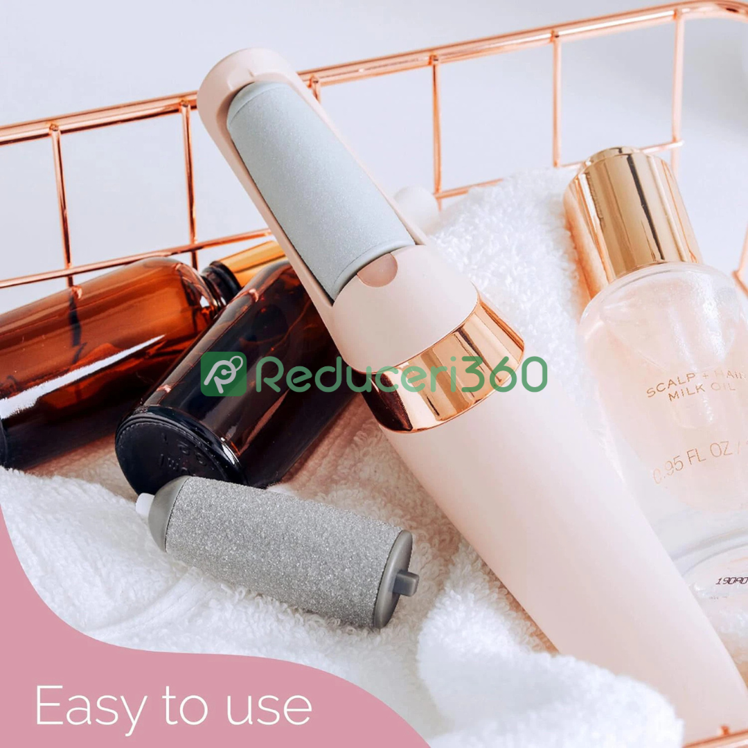 Rola gliseaza cu usurinta deasupra contururilor talpilor tale, indepartand fara efort pielea uscata si dura, in doar cateva secunde.