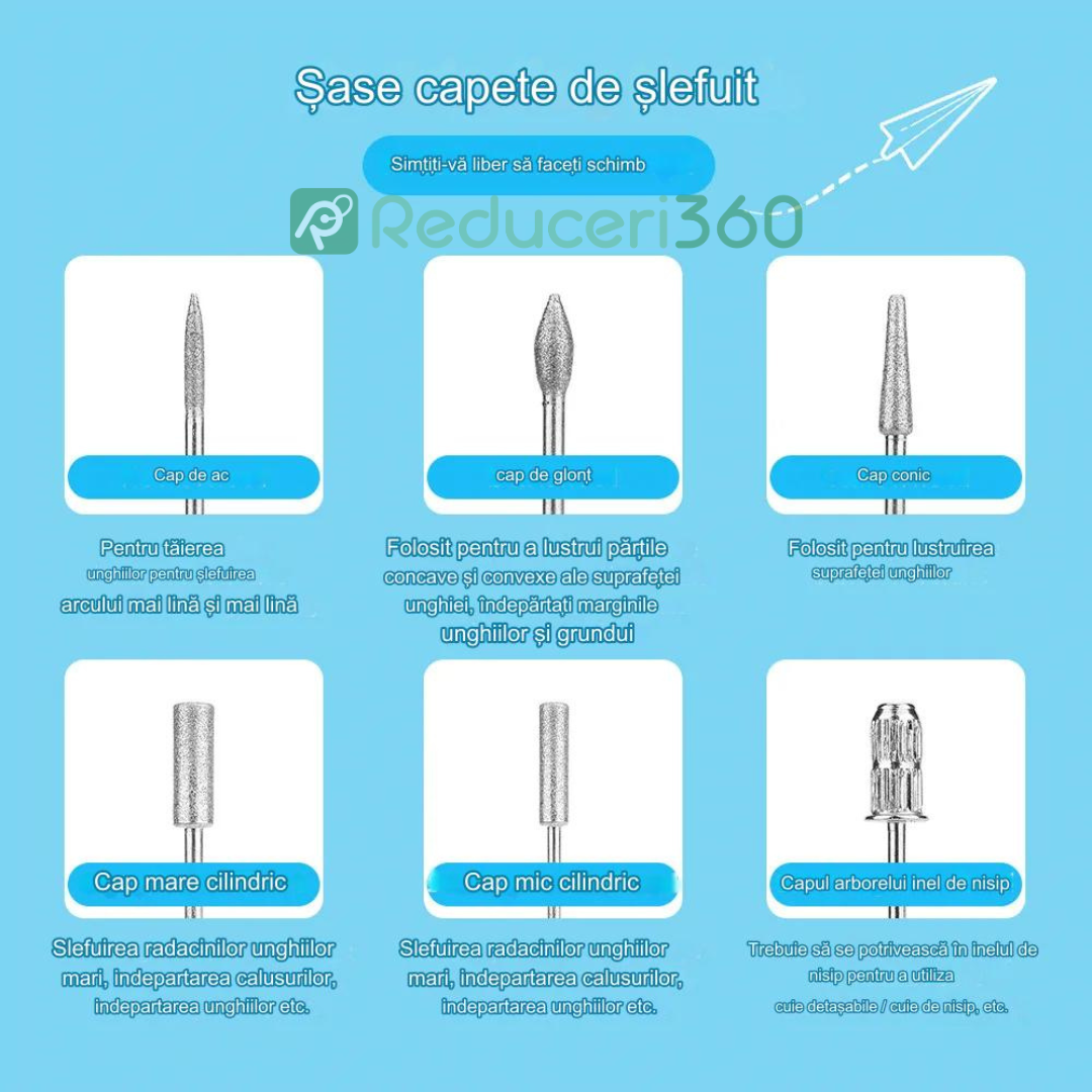 - Pila electrica unghii pentru manichiura - pedichiura este foarte usoara, permite manuirea fara efort, are corp cu forma ergonomica.