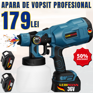 Aparat Profesional De Vopsit Și Zugrăvit LEIHMANN, Electric, Cu Rezervor De Vopsea, 800 ml si 2 Acumulatori, 36V, Portabil