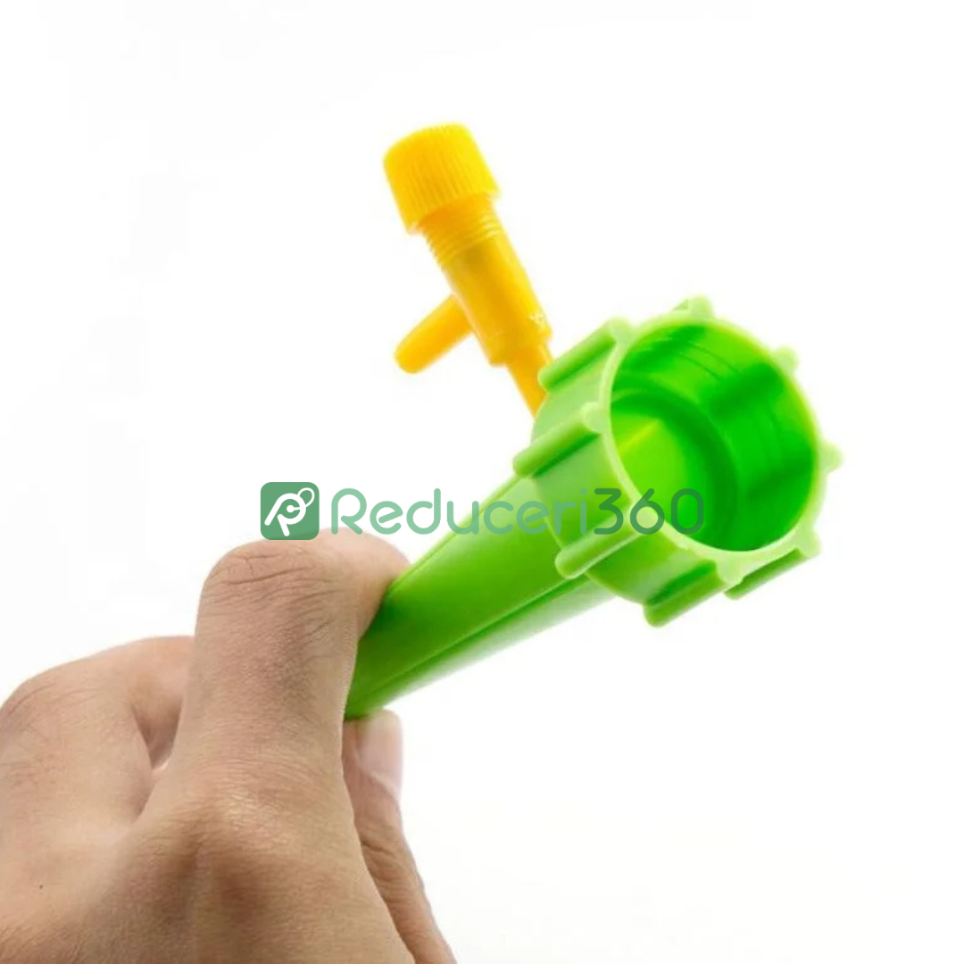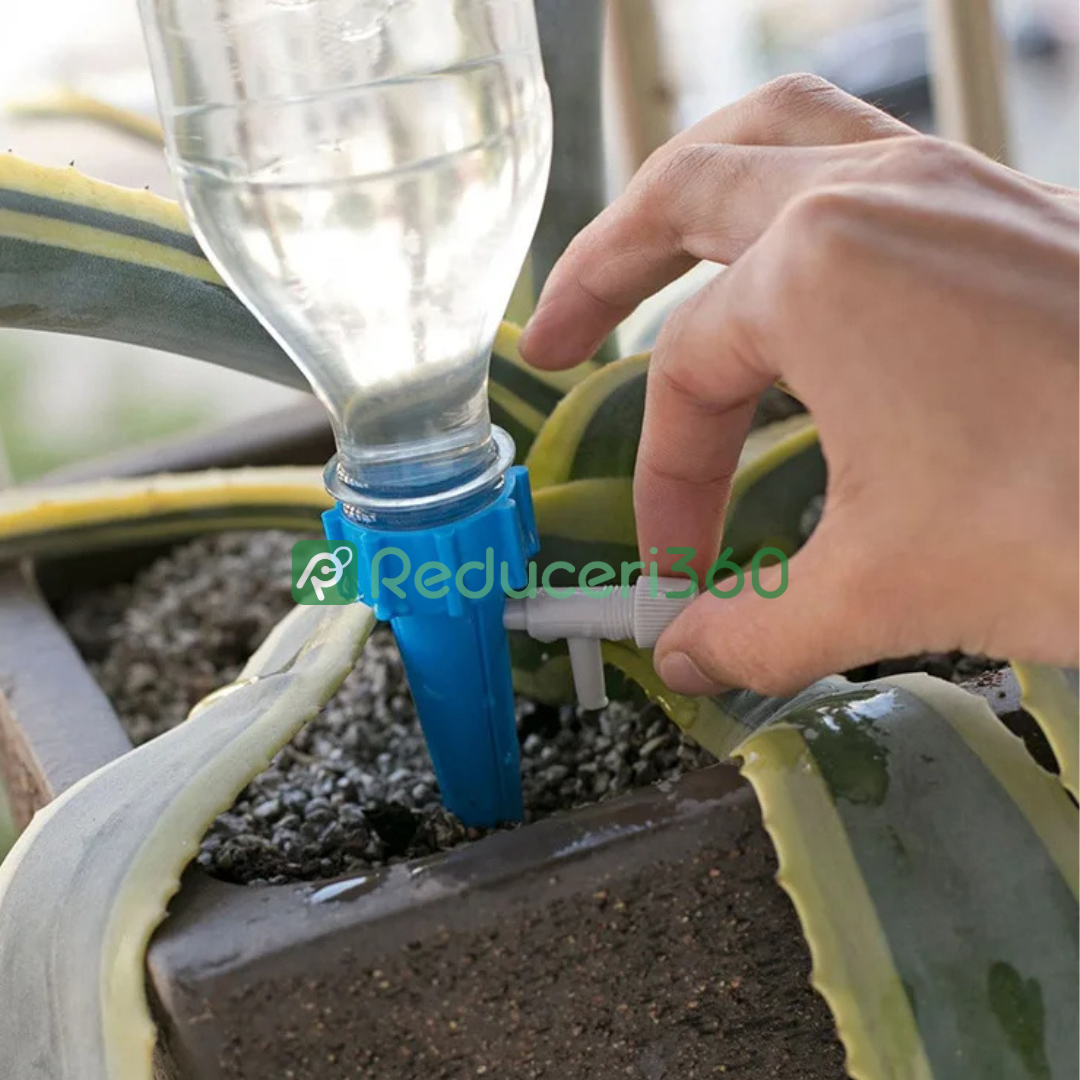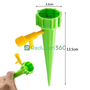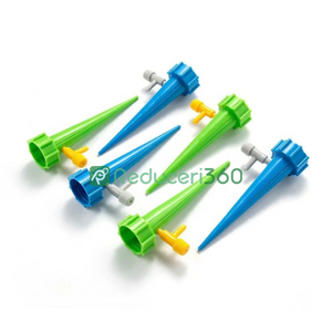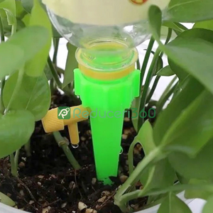 Design foarte simplu pentru udat în combinație cu o sticlă obișnuită. Țepusa se înfiletează pe sticlă în locul dopului. Supapa reglabilă vă permite să setați debitul de apă pentru o udare optimă în funcție de nevoile plantelor. Fără sisteme complexe și costisitoare. Setul conține 12 țepușe pentru udat, astfel încât veți putea avea grijă de toate plantele.