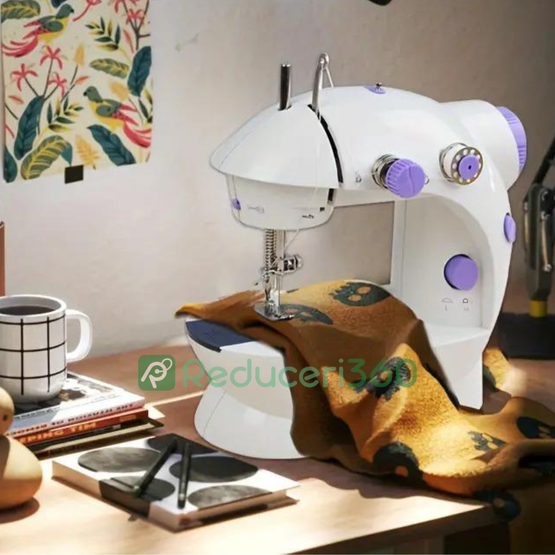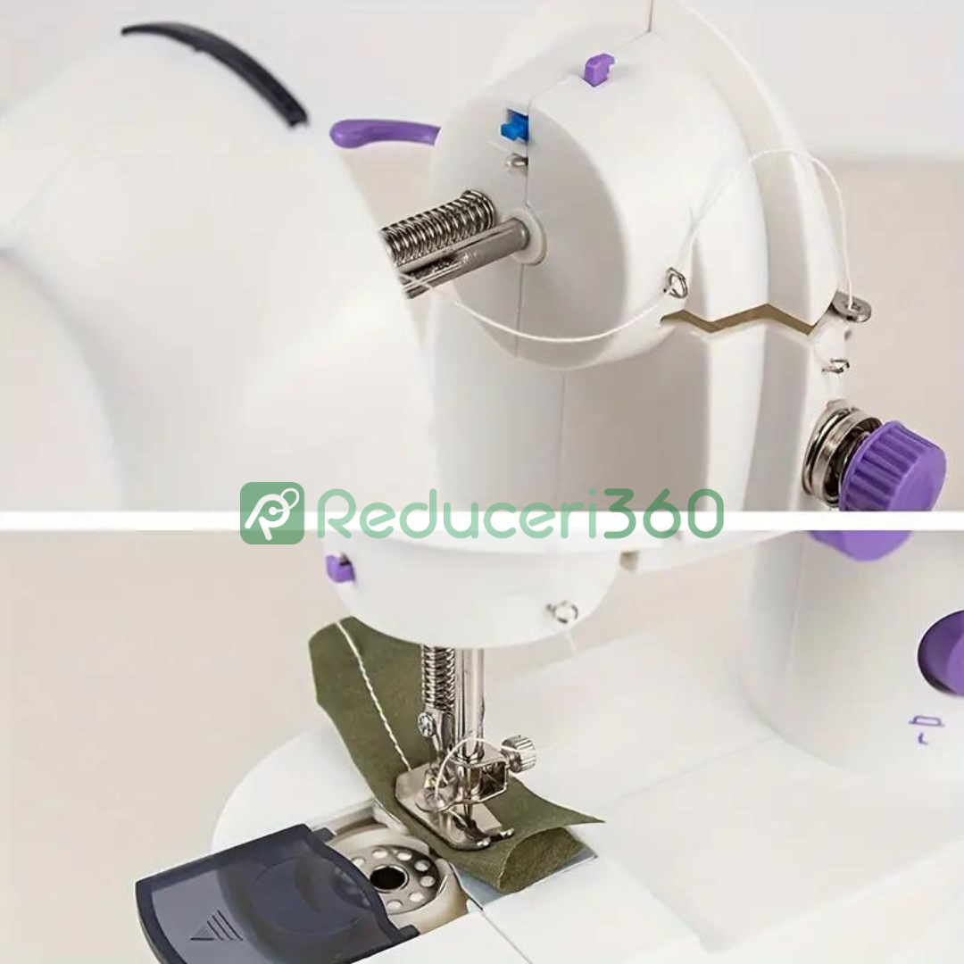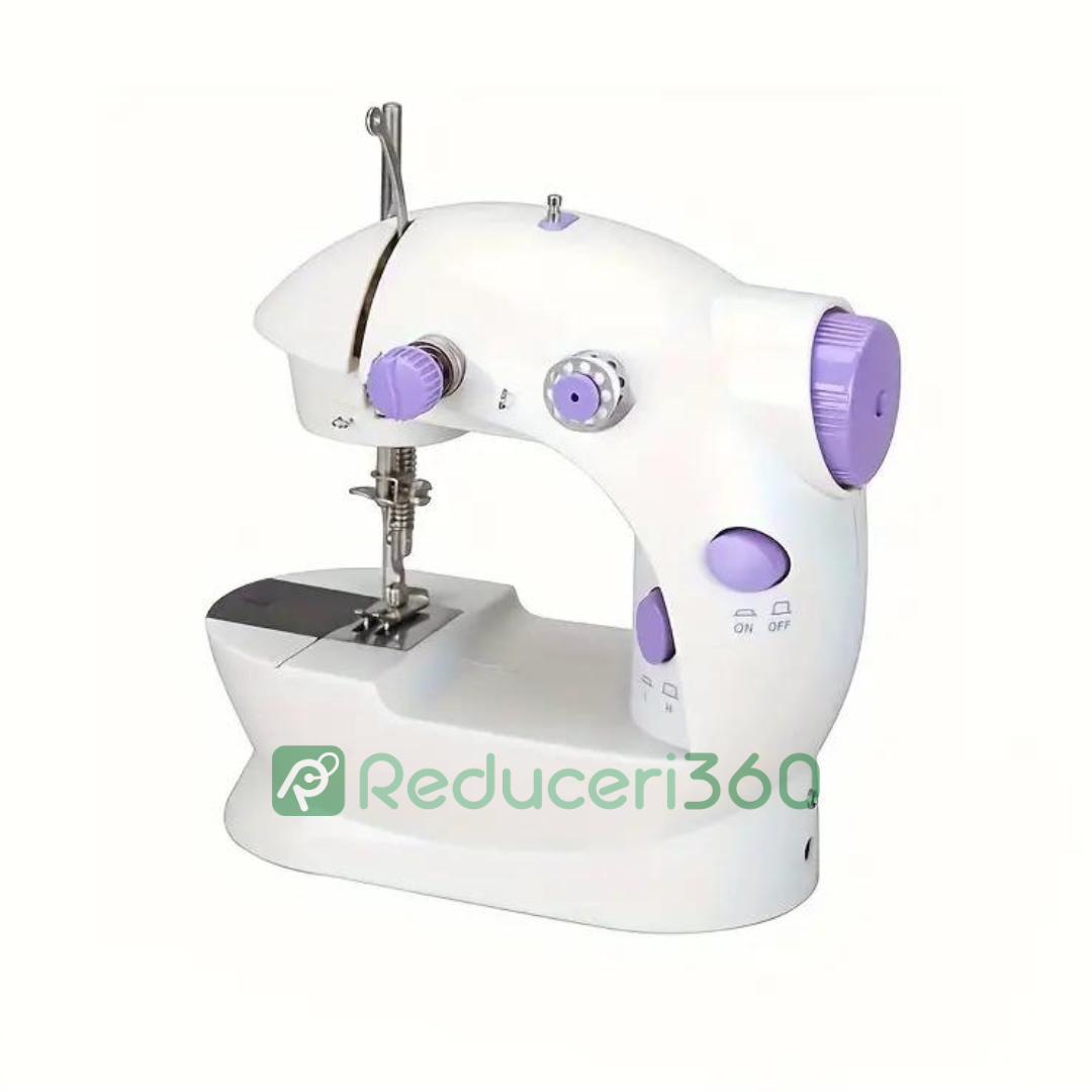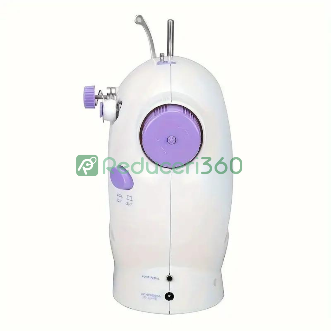 Pentru actionarea masinii aveti la dispozitie o pedala care va comanda in functie de apasarea acesteia viteza cu care masina va coase. Atunci cand aveti la dispozitie o priza cu tensiune de 220V, veti putea renunta la baterii, folosind adaptorul pentru tensiunea de 6V DC, cu care se alimenteaza masina si care este livrat odata cu aceasta.