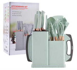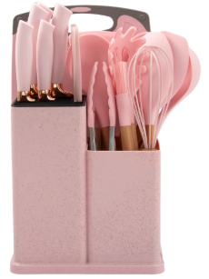 Setul include: linguri, spatule, tel, pensulă, clește, polonic și alte ustensile practice pentru gătirea diferitelor rețete – de la supe și sosuri, până la deserturi. Mânerele ergonomice oferă o prindere sigură și confortabilă.