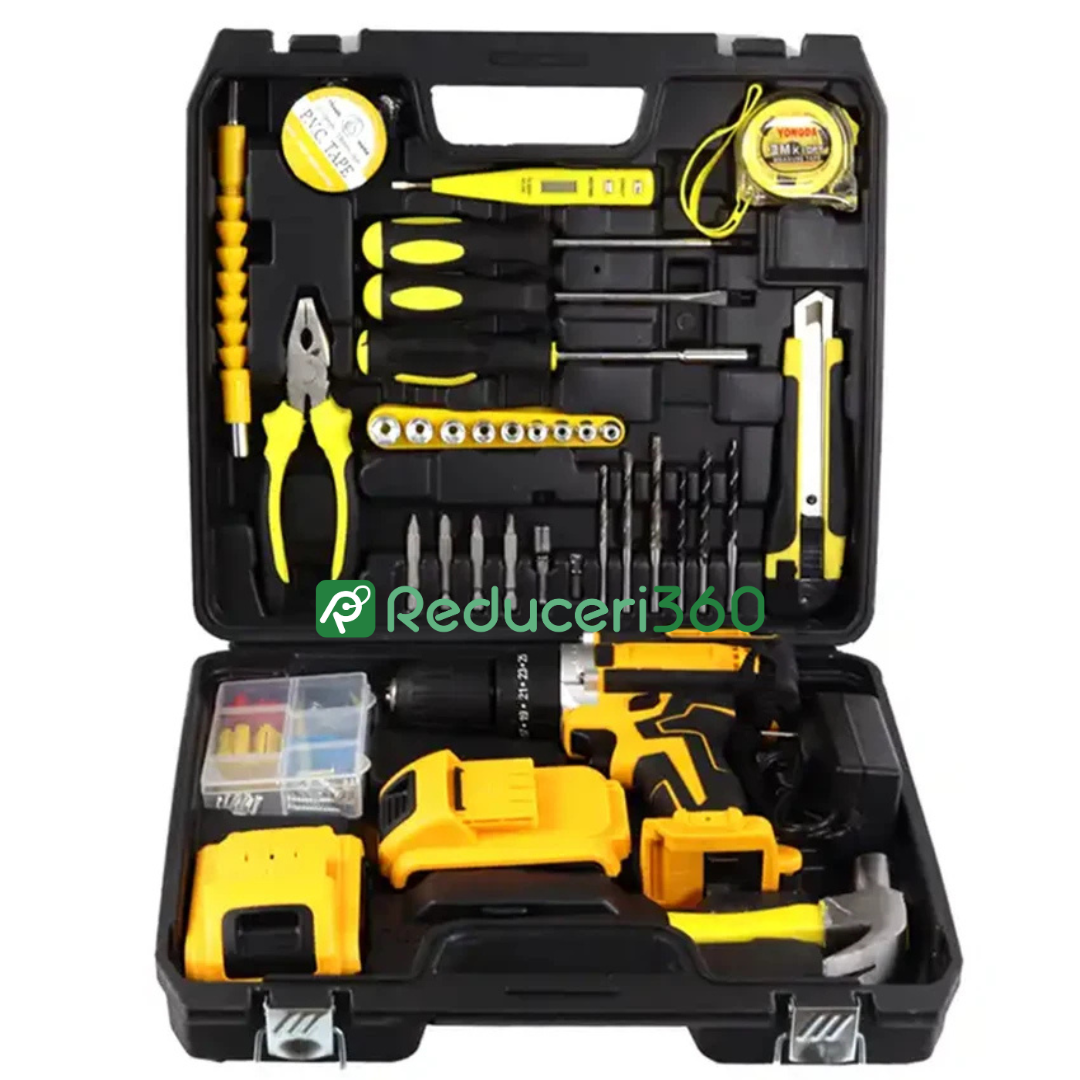 Trusa bormasina LEIH MANN, 2 acumulatori, 36V, 5Ah, incarcator si 30 accesorii, galben