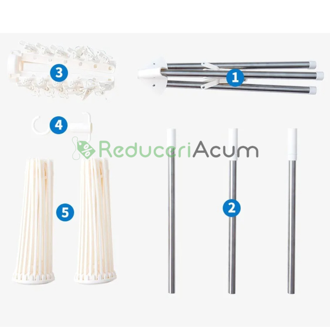 - Compact si Usor de Stocat: Atunci cand este strans, uscatorul ocupa un spatiu minim, fiind perfect pentru orice locuința.